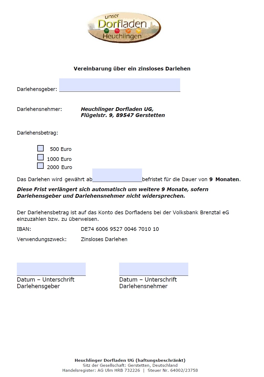 Ihr zinsloses Darlehen sichert den reibungslosen Betrieb unseres Dorfladens und überbrückt die aktuell angespannte Kassenlage.
